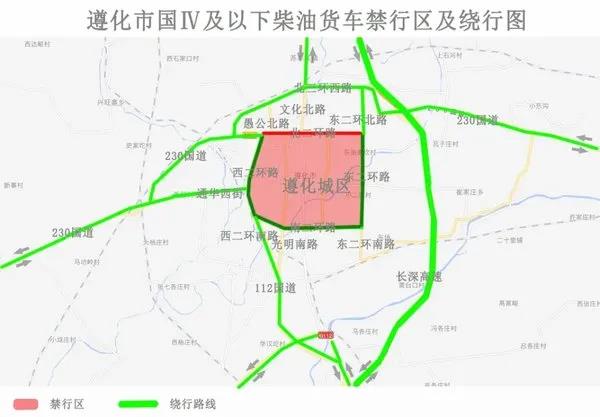 按照《方案》要求,将明确郑州市中重型柴油货车的禁行区域、路段及具体绕行路线;进一步加强中心城区燃油货车通行管控,并根据新能源货车推广进度和增量情况,逐步减少燃油货车市区通行证发放比例。择机出台限制轻型、微型燃油货车在郑州市三环路(含)以内区域通行的政策。● 河北唐山:城区禁行国四 附绕行路线为进一步加强移动源污染防治,持续改善大气环境质量,唐山市市中心区、遵化、丰润区、曹妃甸区等城区都为国四及以下排放标准的柴油货车划定了禁行区域。
